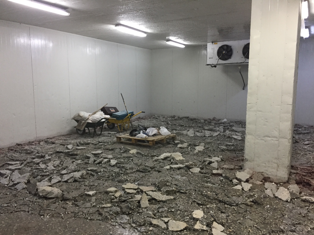-25 CO ջերմաստիճանի պայմաններում աշխատող սառցարանային պահեստի հատակը, ոչ թե պարզապես հատակ է, այլ լավ մտածված ինժիներական ենթակառուցվածք՝ բազմաթիվ շերտերով: Հին հատակը սկսել էր ուռել, հայտնվել էին ճաքեր, հատակը քայքայվում էր և կարիք ուներ շտապ փոխարինման: Ընդհանուր առմամբ իրականացվել է հատակի 9 շերտ, որոնք իր մեջ ներառում են ջերմամեկուսիչ շերտ, երկու ջրամեկուսիչ շերտ, տաքացնող պարույրներով շերտ, երկու ամրանավորված բետոնի շերտեր, նախապատրաստական շերտեր: Աշխատանքներն իրականացվել են համապատասխան նախագծի և սահմանված ժամանակացույցի:
