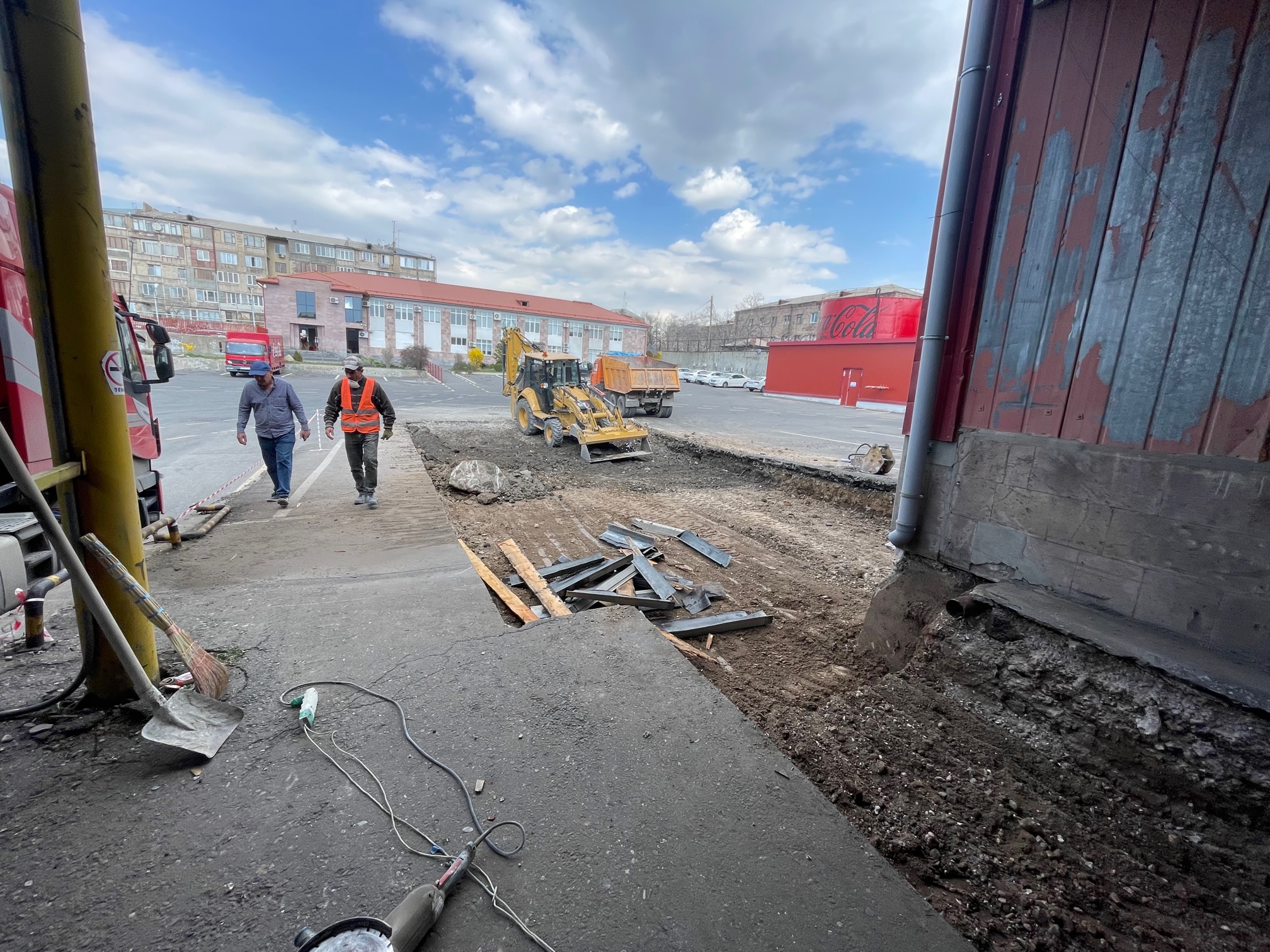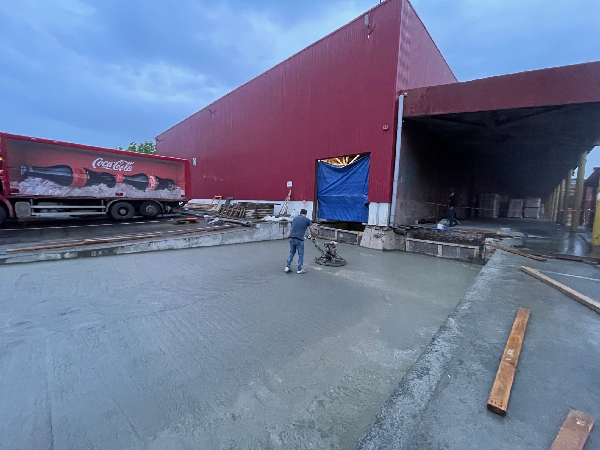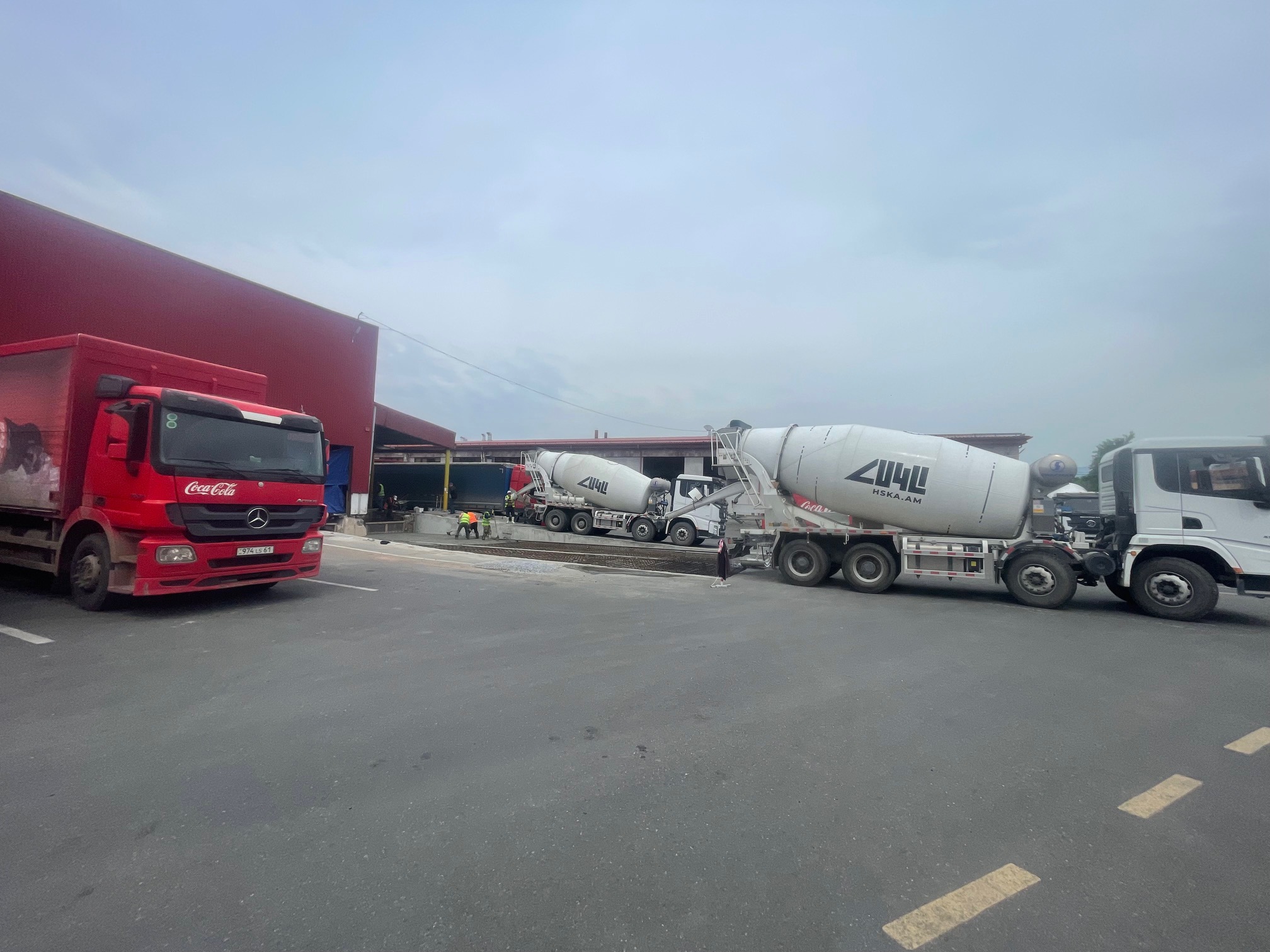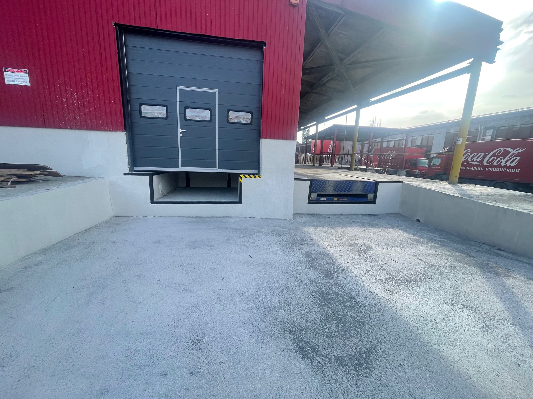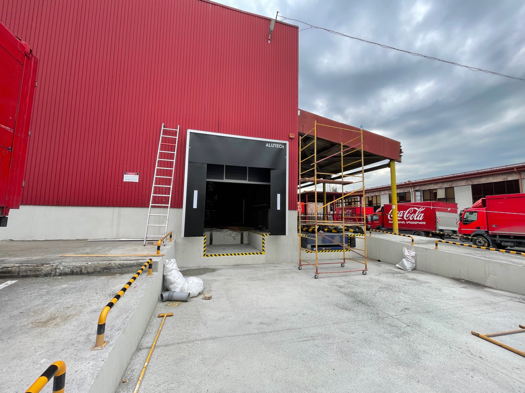 Ասֆալտապատ հատակը փոխարինեցինք 35 սմ հաստությամբ երկաթբետոնով, որպեսզի այն կարողանա դիմակայել բեռնատար ֆուռերին, որոնք ամեն օր բեռնաթափվում են գործարանում: Մենք նաև տեղափոխեցինք ինթնահարթեցվող բեռնաթափման կամրջակները և տեղադրեցինք նոր դարպաս և տենտային գերմետիզատոր, մետաղական ուղեցույցներ և վանդակապատեր և բամպերներ: Բետոնացման աշխատանքները և ամբողջ սարքավորումների տեղադրումը պահանջում էին հուսալի շինարարություն՝ շեշտը դնելով ամրության և դիմացկունության վրա: Մեզ հաջողվեց կատարել այս առաջադրանքը և միաժամանակ վերանորոգեցինք Կոկա-Կոլա ընկերության գրասենյակները, պահեստների որոշ հատվածներ և արտաքին բարեկարգման աշխատանքներ: